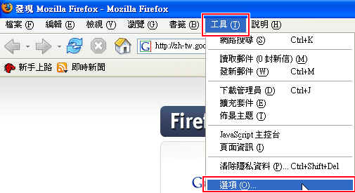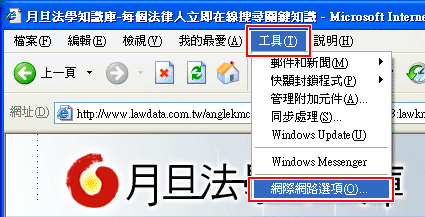 1. 工具─>網際網路選項 |