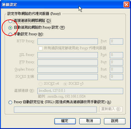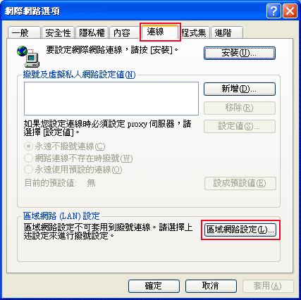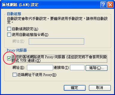 3. 當沒有選『直接連線到網際網路』,表示透過單位的Proxy Server 連線 |