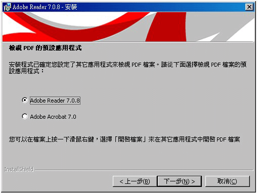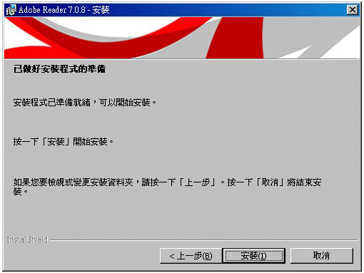 Acrobat Reader程式安裝,您可於「開始>程式集」中尋找到Acrobat Reader程式。