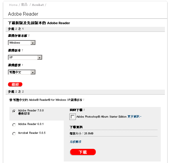 下載:(使用簡體中文網友請選擇於Adobe中文網站下載) |