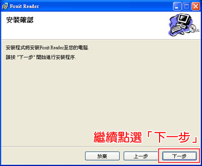 Step3. 點「下一步」 Step4. 保持預設的安裝資料夾,點「下一步」 Step5. 安裝確認,繼續點選「下一步」 Step6. 安裝完成!點選「關閉」,退出安裝程序 |