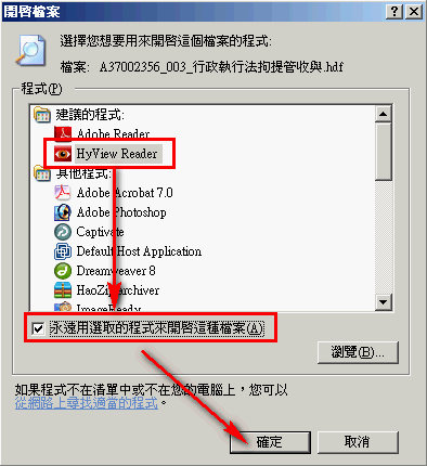 PS. 若您正常安裝 HyView 閱讀器軟體,透過IE瀏覽器至知識庫網站下載文章,會自動以 HyView 閱讀器開啟文章,並不會產生以上的狀況,但還是可檢查電腦內全文檔之預設開啟程式是否為